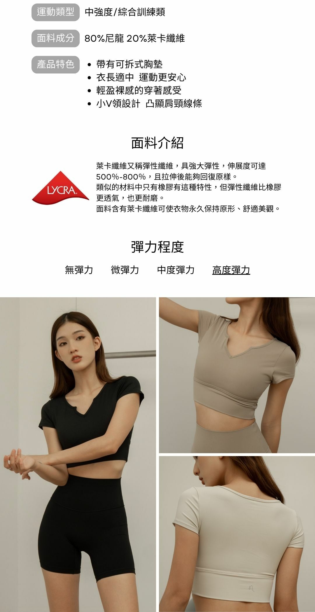 裸感小V領短袖運動上衣